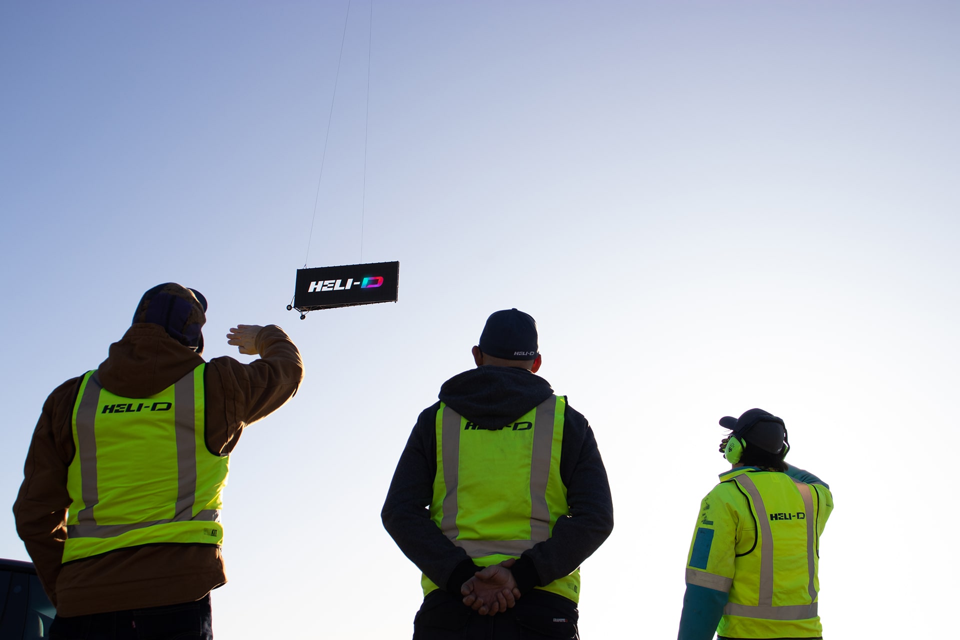 Flying video screens beneath helicopters captivate audiences in an experiential way, providing an authentic, real world DOOH media moment for your brand.